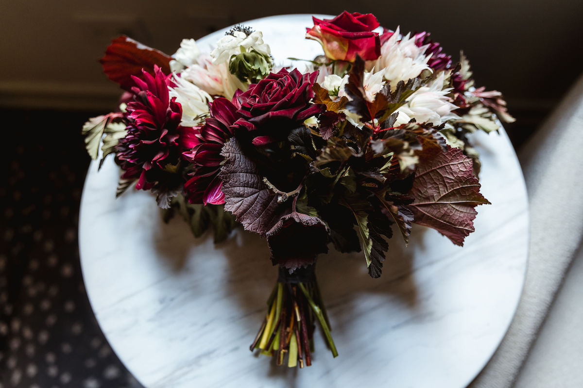 Sylvia Lukach de Cape Lily Floral Design n’a pas peur d’embrasser le drame cette Saint-Valentin ! Son bouquet de mariage maussade, sombre et dramatique est une touche unique sur les teintes rouges et roses vibrantes attendues des vacances; cependant, nous en adorons chaque seconde !