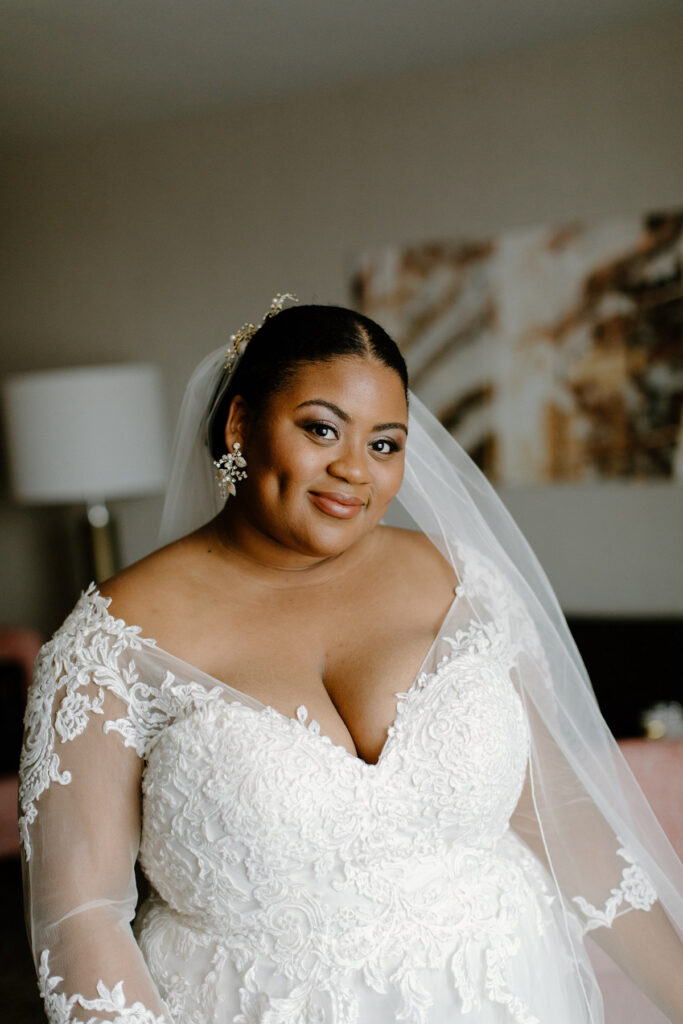 Ma robe a été confectionnée dans un magnifique style traditionnel par LoAdoro. Il avait des manches 3/4 avec des perles et des ornements en dentelle partout. Le dos et le décolleté étaient bordés de dentelle et la jupe était en tulle. Mon voile a été personnalisé avec de la dentelle qui correspondait étroitement à la dentelle de ma robe. Mon accessoire préféré était ma pince à cheveux qui était placée sur le haut de mon voile.