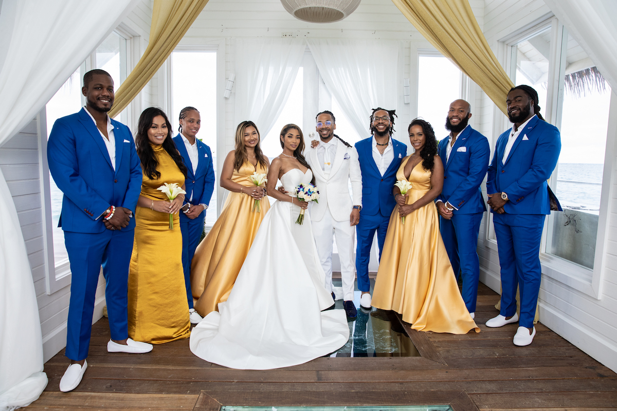 Leur mariage était également très spécial pour les membres de la famille qui n’avaient jamais quitté le pays auparavant. « Pouvoir leur offrir l’opportunité d’élargir leurs horizons était incroyable », déclare Bradford. “Nous avons même offert à nos invités des séances photo professionnelles avant et après le mariage, dans tout le complexe et dans les villas sur l’eau.”