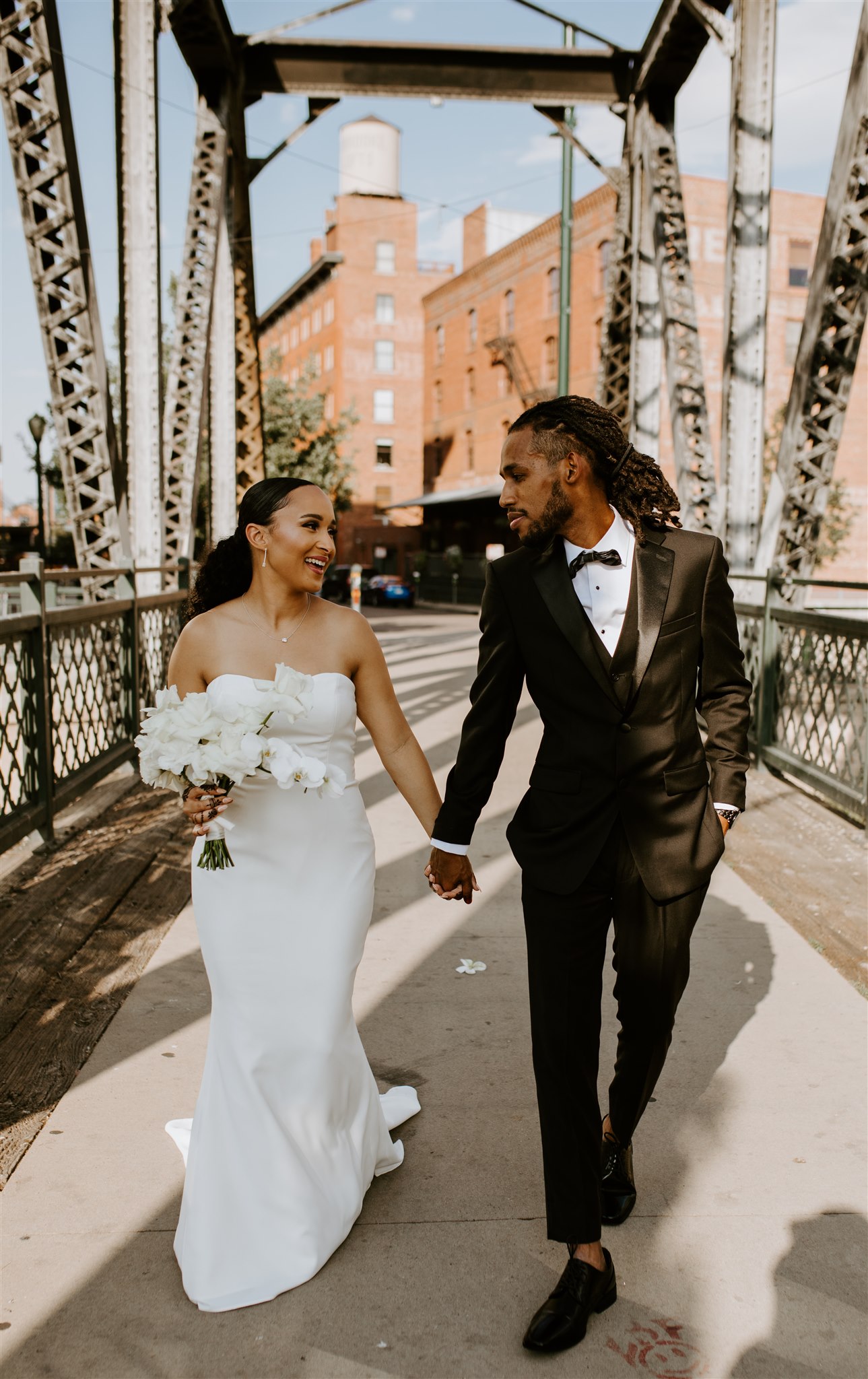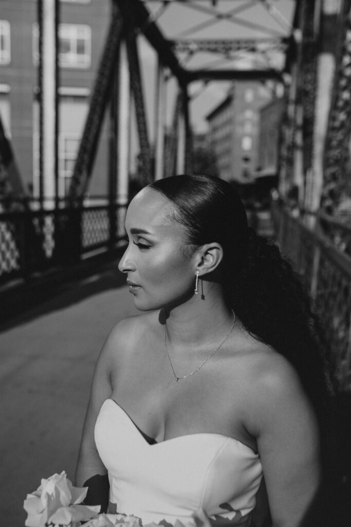 Le plus mémorable a été de s’arrêter dans la salle pour le Jirtig et de voir mes frères « trempés » dans leur Jalabiya (tenue masculine traditionnelle soudanaise). Ils étaient d’une beauté époustouflante et, plus important encore, ils ont montré leur respect pour la culture de mon mari et leur soutien à leur sœur. Je n’oublierai jamais cela. Je me souviendrai aussi toujours des moments que mon mari et moi avons eu avant la cérémonie de mariage lors de notre séance photo sur le pont Wazee. Ce n’était rien d’autre que de la joie, de la folie et de la fête entre meilleurs amis et partenaires de vie.