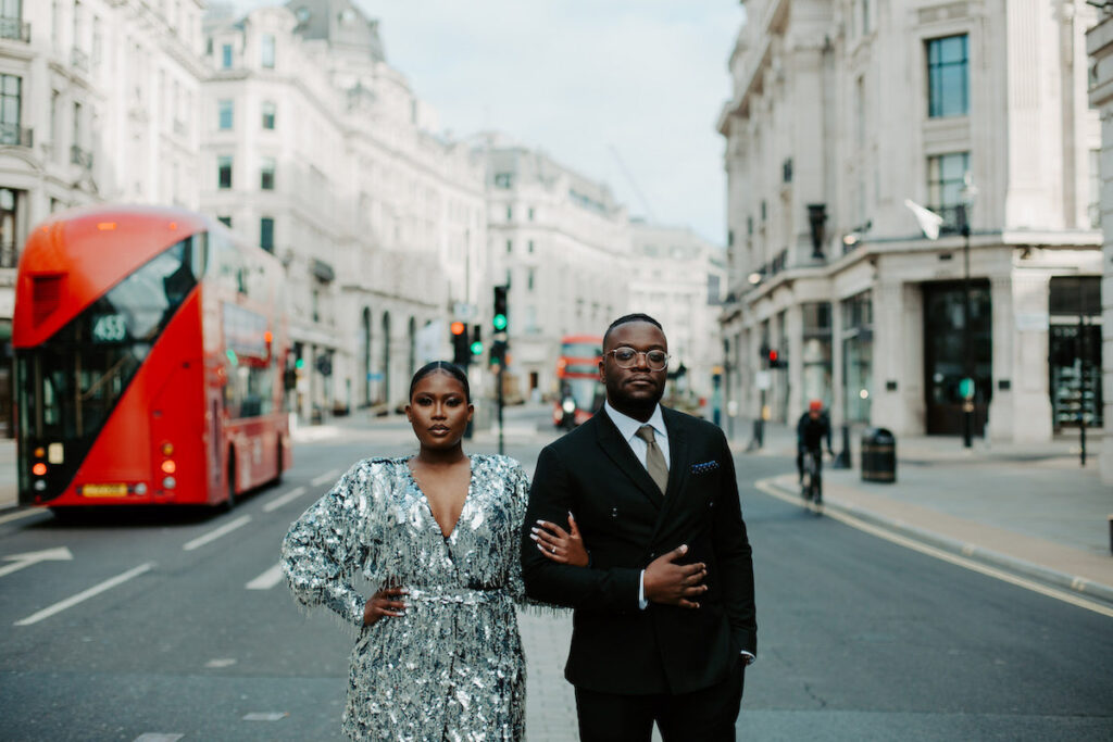 Qu’obtenez-vous lorsque vous placez deux personnes stylées en plein cœur de Regent Street à Londres ? Une célébration de fiançailles élégante qui a mis en valeur l’amour d’Abi et Joe pour la créativité et la mode !